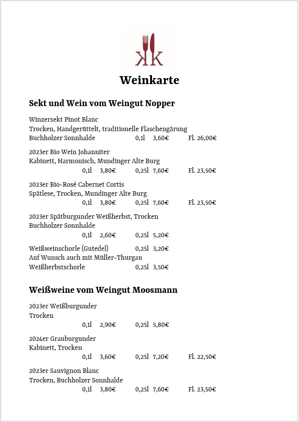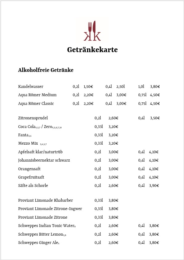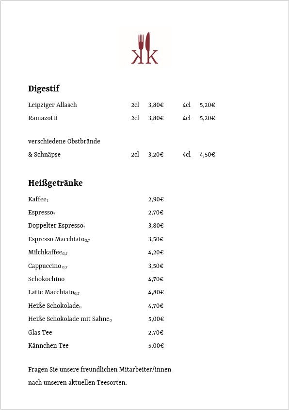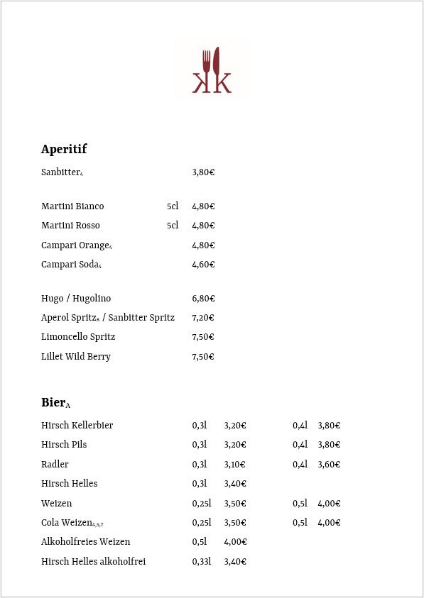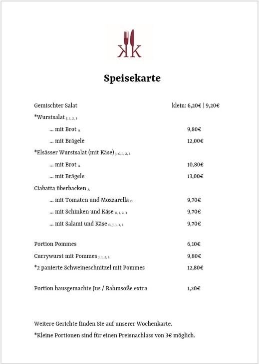 Speisekarte